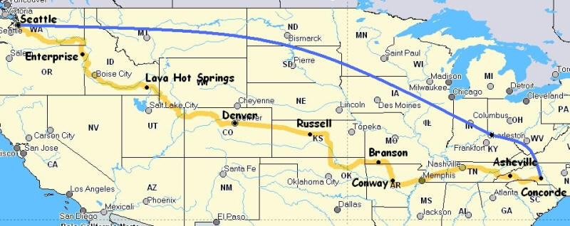 1993 BMW K1100RS w/ K1200 Engine I bought this bike on eBay as an impulse buy. I found it in the last few minutes of bidding and thought it was underpriced so I put in a low bid and won the auction. (I recognized the sellers name from Inter forums so I was sure it was well taken care of.) Only after I'd won the auction did I realize that the bike was in North Carolina! (I'm in Seattle.) Oh well, it was a good excuse to go for a cross country ride and do some exploring. I paid the deposit and called the seller to arrange a date to fly to North Carolina to pick it up. On July 15, 2009 I flew to Charlotte, got picked up, did some minor prep work to the bike, packed and and was on my way for a 3,737 mile eight day ride: