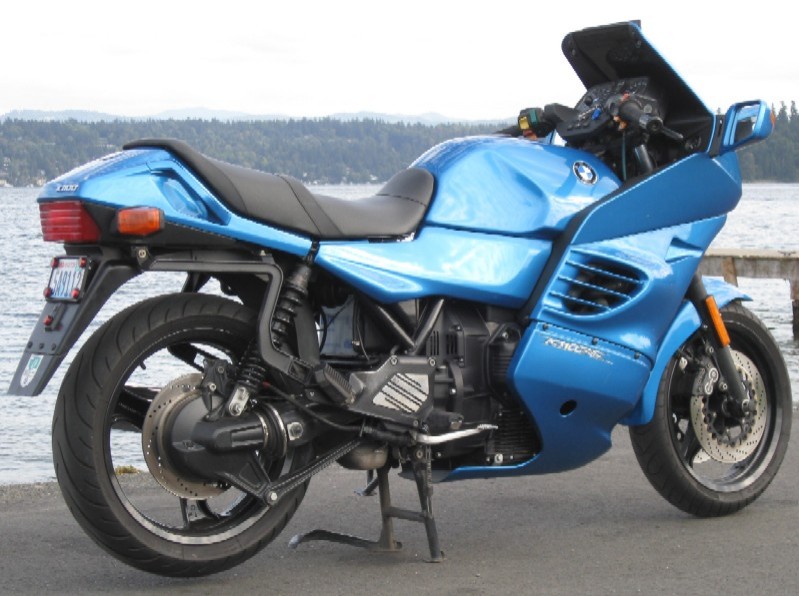 UPGRADED HEAT MANAGEMENT: Another issue with K bikes is the amount of heat they put off to the knees and thighs of the rider. Although not a big issue in the Pacific Northwest since our temperatures are mostly moderate I have done several things to improve the heat management on this bike. a) Insulating blanket: In order to reduce the amount of heat that gets emitted to the rider's legs, I have added an insulating blanket under the tank, side panels and seat which channels the heat to the rear away from the rider. b) Larger radiator: I replaced the stock radiator with a 50% larger radiator. This improves the efficiency of the cooling system. c) Fan switch: When riding at slower speeds in warmer temperatures K bike fans tend to come on rather late and exacerbate the heat problem. I have added a manual fan switch which allows the rider to manually control the fan and check the heat buildup sooner. d) Red Line "Water Wetter": I also added Red Line Water Wetter to the cooling system. Though this doesn't effect the heat transferred to the rider, it does reduce hot spots on the engine and improves the cooling system's ability to cool the engine.