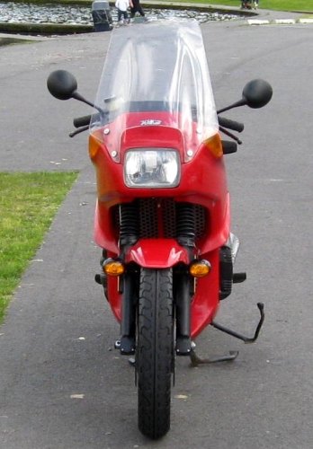 Aeroflow Windscreen: The stock windscreen on a K75S looks cool and all but doesn't do a lot to keep noisy wind and rain off of your helmet. This bike has an aftermarket Aeroflow which does a much better job when traveling at speed and/or in the rain. |
